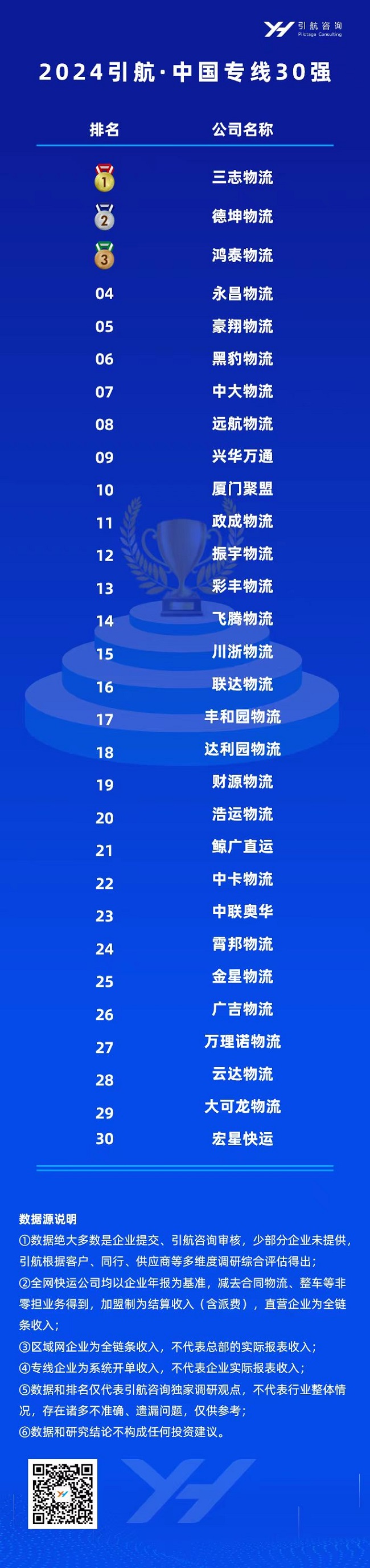 振宇物流榮膺2024引航·中國零擔(dān)50強(qiáng),位列第31名。2024引航·中國專線30強(qiáng),位列第12名。