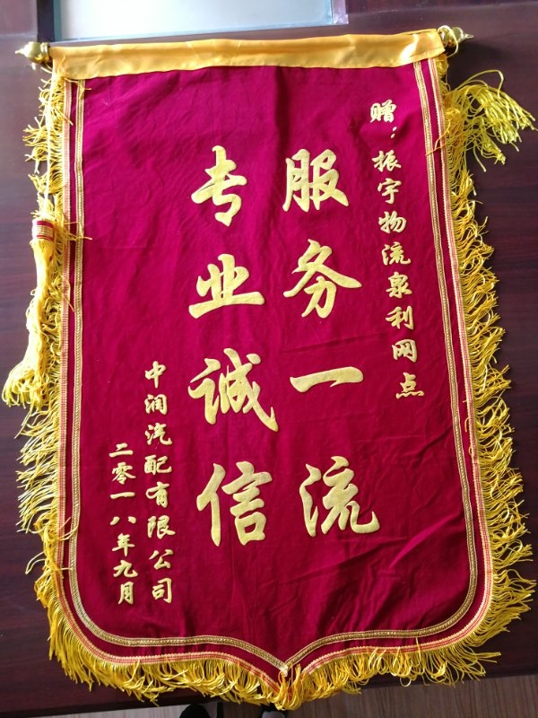 振宇物流泉利網(wǎng)點(diǎn)服務(wù)深得贊許,獲中潤汽配有限公司贈(zèng)送錦旗!