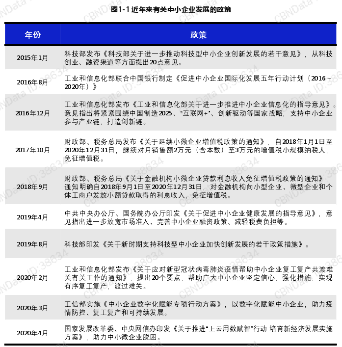 自2009年國務(wù)院出臺《國務(wù)院關(guān)于進(jìn)一步促進(jìn)中小企業(yè)發(fā)展的若干意見》,提出要完善中小企業(yè)政策法律體系、緩解融資困難后,中央又出臺多個(gè)政策助力中小企業(yè)發(fā)展。