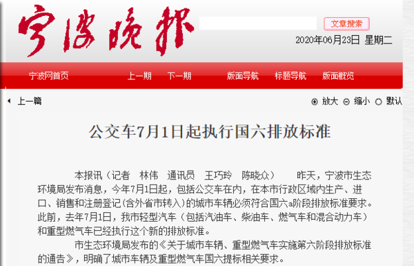 寧波市生態(tài)環(huán)境局發(fā)布消息:今年7月1日起,在本市行政區(qū)域內(nèi)生產(chǎn)、進(jìn)口、銷售和注冊登記(含外省市轉(zhuǎn)入)的城市車輛必須符合國六a階段排放標(biāo)準(zhǔn)要求。